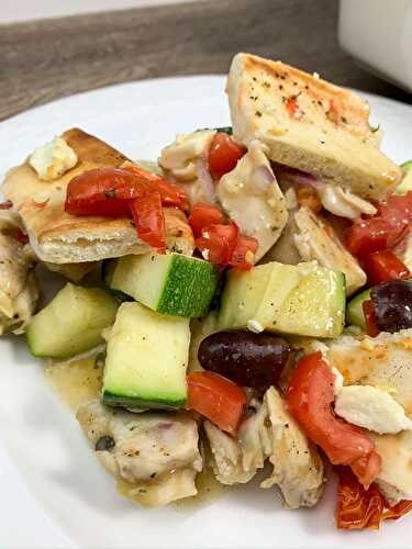 This Greek Chicken and Pita Casserole is packed full of flavor and reasonably healthy as well.