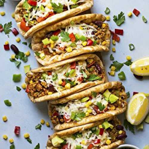 No one has ever said no to these delicious 30-minute tacos with pita bread which get filled with spicy minced beef, beans, and some grated cheese.