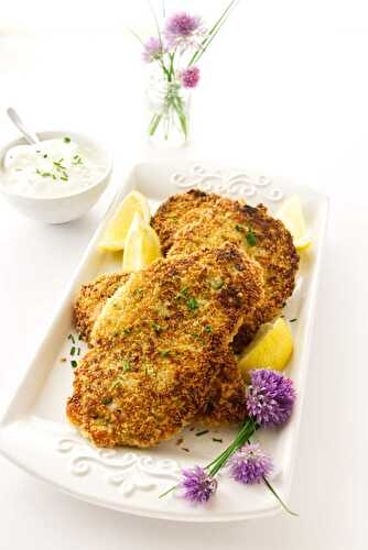 These pan fried chicken breast cutlets are tender and crispy, dipped in a sour cream chive mixture and coated with Panko bread crumbs.