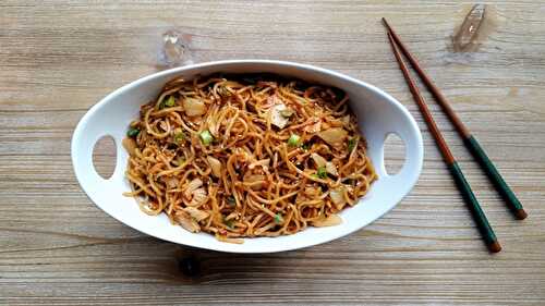 Fresh noodles stir-fried with lots of garlic, chili oil, tangy kimchi, sliced scallions and a delectable soy/sesame sauce are combined to make Spicy Kimchi Garlic Noodles a perfect side dish, or add vegetables and your favorite protein for a complete.