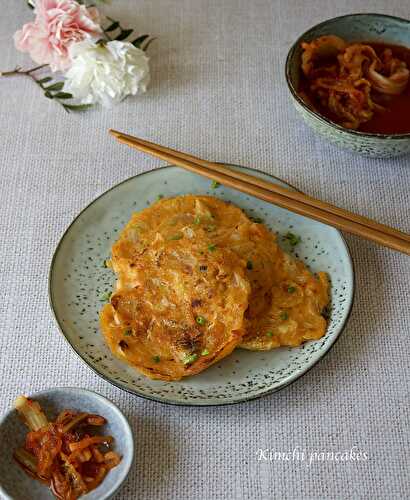 Let's take a quick trip to Korea with these delicious Kimchijeon or kimchi pancakes! Nothing to do with your usual Sunday pancakes, they're more like a crepe with a strong kimchi flavored, perfectly spicy and easy to make.