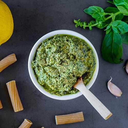 This Easy Vegan Pesto is quick to make and so delicious! You'll love the taste of fresh basil and garlic in this oil-free sauce.