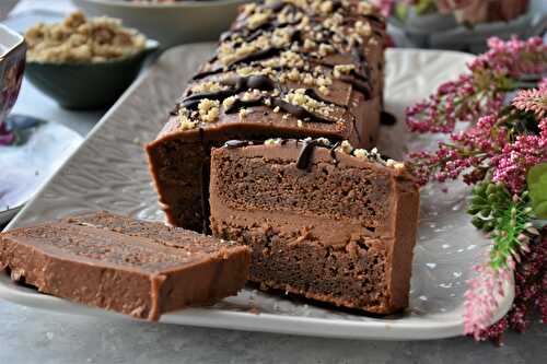 Vegan chocolate Lebkuchen cake - German gingerbread cake with chocolate glaze.