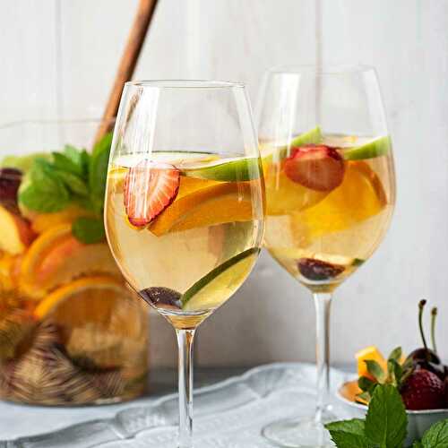 This summer recipe for white wine Sangria can be made with just 3 ingredients but you can also customize it to your liking by adding some Cointreau or another liqueur.