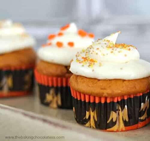 These plush and luscious pumpkin cupcakes have pumpkin pie spice pudding, plus a whole can of pumpkin in them and they are sooo delicious.