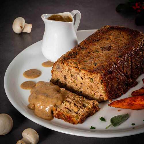 A vegetarian style of meatloaf made up of mixed nuts, wild rice, and cremini mushrooms.