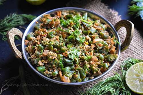 South Indian style stir-fried beans with minimal spices and loads of freshly grated coconut.