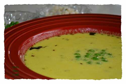 Unique, super-healthful and flavorful Indian yogurt soup 'kadhi'; made with yogurt, lentil flour and a tempering of Indian spices, it is traditionally served over steamed basmati rice.