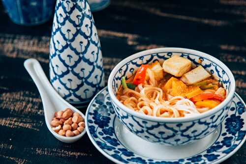 This recipe for Pad Thai has rice noodles, beansprouts, carrot, garlic, tamarind and more combine to make this classic Thai dish.