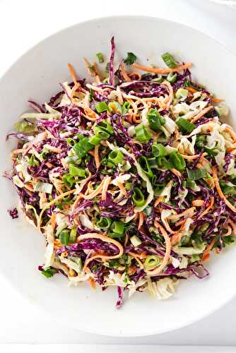 This creamy healthy coleslaw is tangy, crunchy, and a little bit sweet but is significantly lighter on calories.