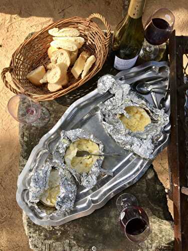 Easy, delicious baked, creamy Camembert in vine leaves is the ideal side to your braai.