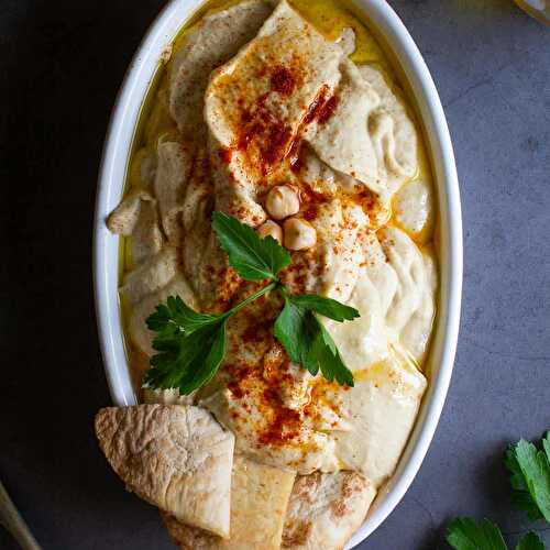 Learn how to make the best homemade hummus with tahini and serve it as a dip or spread with plenty of pita bread.