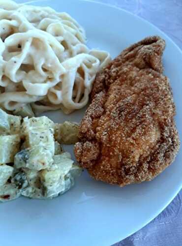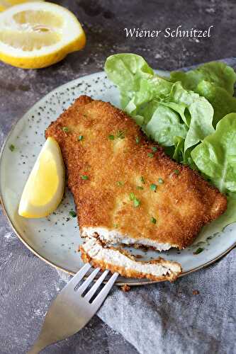 Let's start with the important question here : what is a Wiener Schnitzel? Nothing simpler, it's a thin cut of meat, breaded and fried until golden and crispy.