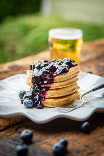 Ricotta Beer Pancakes with Blueberry Basil Syrup Evening pancakes are the best ones, but —hear me out— not for dinner.