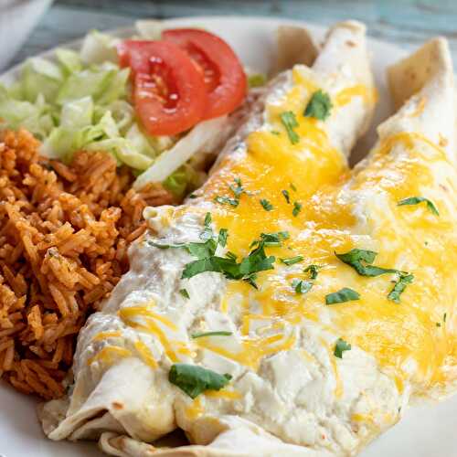 Sour cream chicken enchiladas with green enchilada sauce are creamy, cheesy, and full of Mexican flavor that the whole family will enjoy! This enchilada recipe is made with no condensed soup, but don't worry, there is no shortage of flavor! The combination.