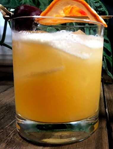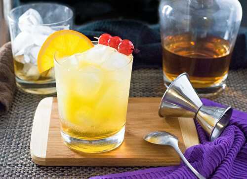 A Tiki Bitters Whiskey Sour has a balance of whiskey, amaretto, orange liqueur, and fruit juice that will make you feel like you are on vacation!