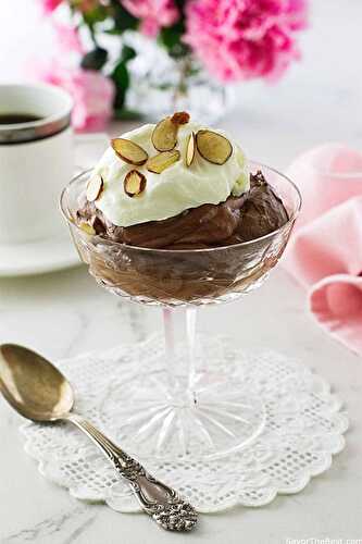 A decadent feather-light, fluffy chocolate amaretto mousse makes an elegant dessert.