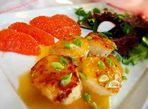 Tender, Seared Scallops in Black Truffle Beurre Blanc Sauce.