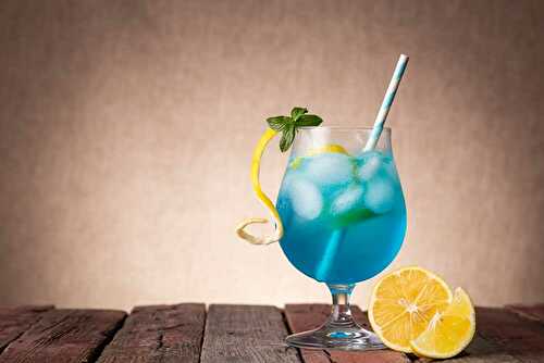 Blue lagoon mocktail is made with blue curaçao syrup with zesty notes of orange peel.