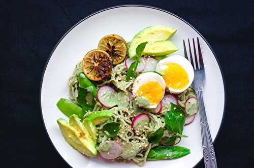 This creamy noodle salad is so easy and only takes a few minutes to make, it also tastes so crazy good and vegan-friendly.