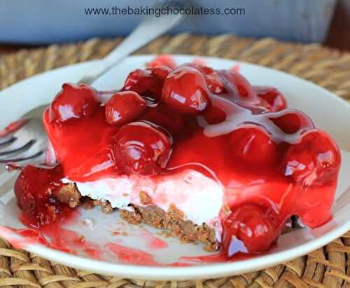Perfect anytime of the year! Creamy cheesecake delight topped with yummy cherry pie filling and a tempting Biscoff cookie crust that will make you want to start celebrating early!