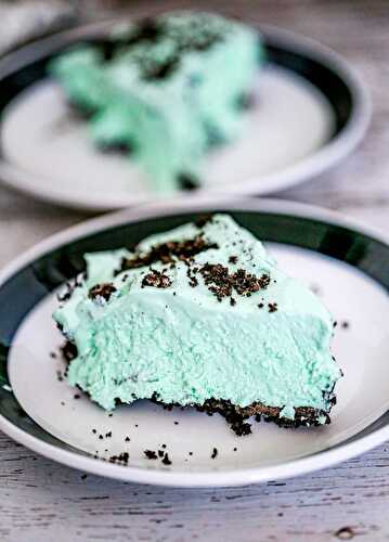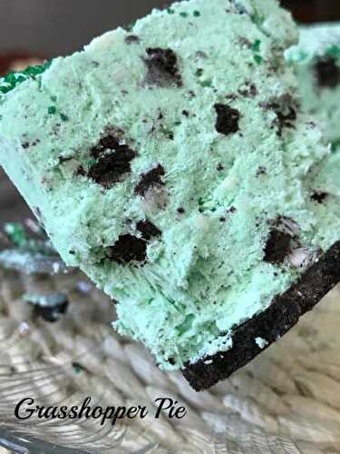 This decadent, vintage mint chocolate Grasshopper Pie comes together easily with just 5 simple ingredients! It has a cool, creamy minty pie filling made with creme de menthe and marshmallow fluff with a homemade chocolate Oreo crust and cookie crumbles.