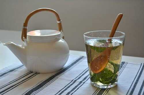 A simple apple and mint iced green tea recipe perfect for hot summer day.