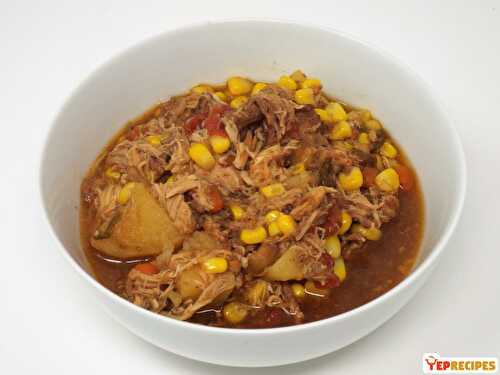 A slow cooked stew with beef, pork, chicken, and vegetables usually made over an open flame in large batches for community gatherings, this recipe is a scaled down version made in the slow cooker.