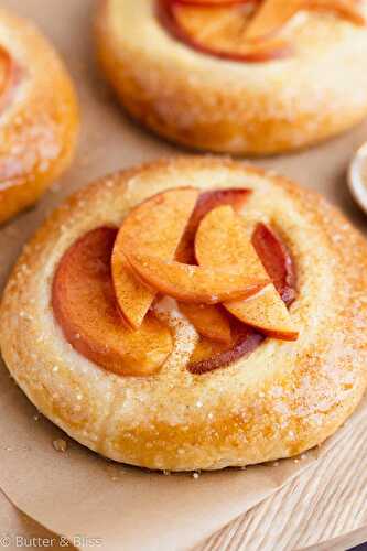 This Small Batch Peach Kuchen recipe makes 4 individual peach and custard pies.