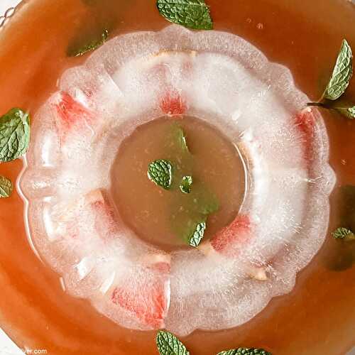 This easy punch recipe is non alcoholic, homemade with the frozen fruit of your choice and makes the perfect party punch! With just 5 ingredients it's ready in 5 minutes or can be made hours ahead of time!