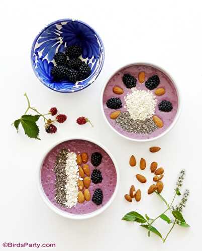 Blackberry, Banana and Maple Smoothie Bowl Recipes for breakfast or healthy after school snack or smoothie bar at brunch or baby shower!