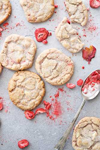 These Vanilla Bean Strawberry White Chocolate Chip Cookies are buttery, soft, and taste like strawberries and cream! These wonderful cookies are the perfect Valentines Day treat!