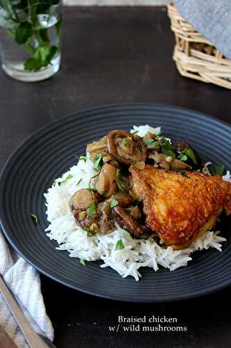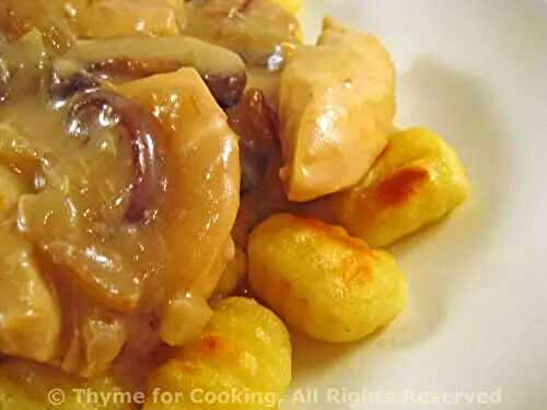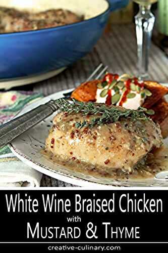 Chicken is braised and covered in a sauce with mustard and thyme; absolutely delicious!