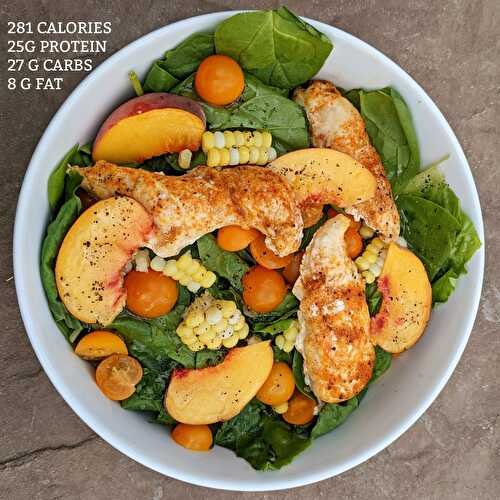 With 25 grams of protein, this grilled chicken and peach salad is the perfect lunch for any weight loss plan.