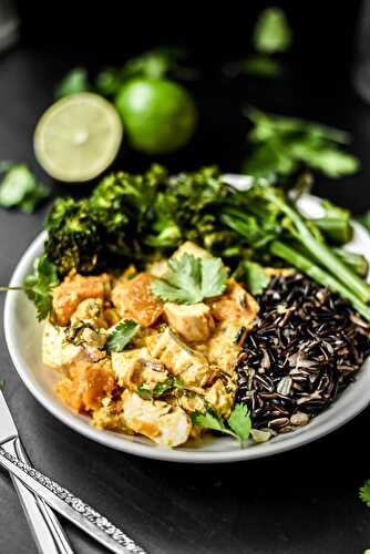 Need a light and healthy curry in a hurry? This recipe has both a vegan and non-vegan version and comes together in 45 minutes or less!