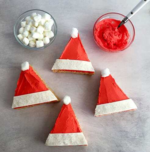 Santa Hat Rice Krispie Treats are easy to make and fun to eat! Kids and adults will love these old school treats with a fun holiday twist.