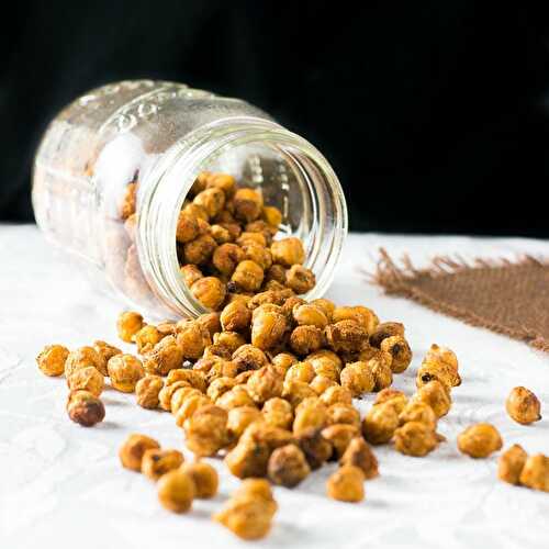 These crunchy roasted chickpeas are the ultimate healthy snack - high in protein and fibre, low in calories and fat, vegan and gluten free.
