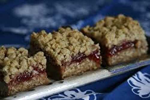 Gluten-free luscious raspberry jam cookie bars recipe with coconut and toasted almonds.