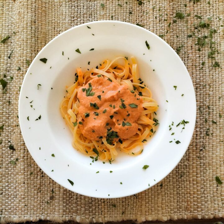 Not your traditional pasta dish, this Creamy Roasted Red Pepper Alla Vodka Pasta is rich, creamy and perfect for a quick weeknight meal! Bell peppers are roasted to perfection and then made into a smooth and creamy Alla Vodka sauce that is so incredibly.