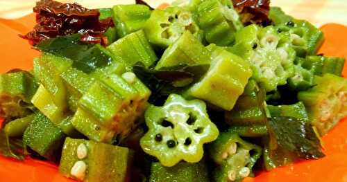 INGREDIENTS:- ladys finger - 15 green chillies, slitted - 2 long red chillies, cut into pieces - 2 curry leaves - 2 strand mustard.
