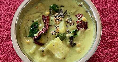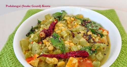 This kootu is made with Pudalangai which is known as "snake gourd" in English, probably because of its appearance and length.