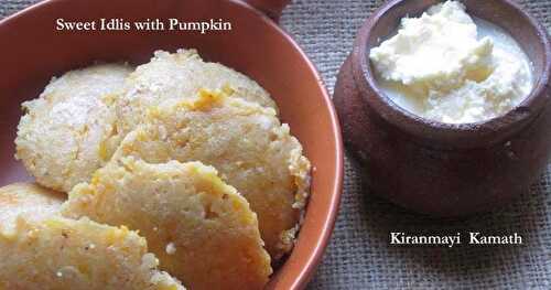 SWEET IDLI WITH PUMPKIN: GUEST POST BY KIRANMAYI KAMATH As followers of this blog know, from time to time, I invite friends to contribut.