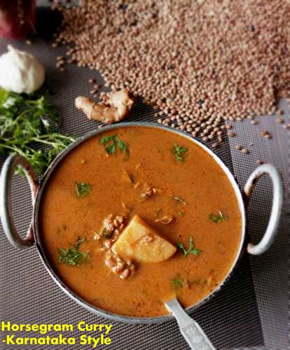 A spicy curry made with sprouted Horse Gram ,a traditional Karnataka Style recipe