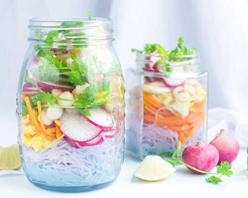 Color changing vermicelli salad in a jar is such a fun and awesome way to do the meal preps.