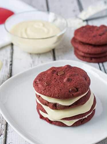 These Red Velvet Chocolate Chip Cookies are awesome enough on their own, but add the Cream Cheese Frosting and it takes the cookie to a whole new level of YUM!