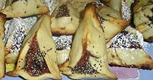 Hamantaschen, a triangular jam-filled butter cookie, is the traditional food for the Purim holiday.