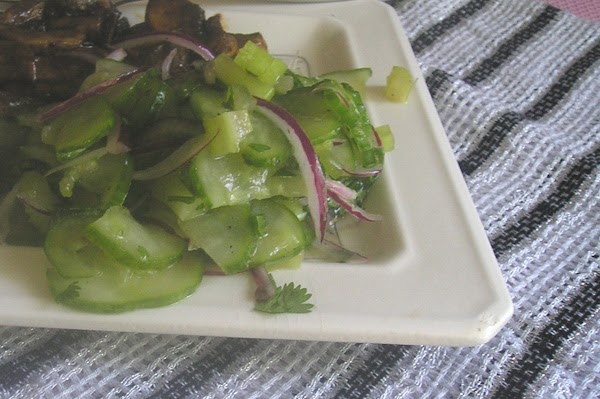 I grew up eating cucumber (“cukes” as my mother often called them) and onions.