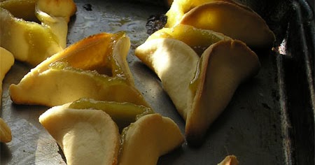 Hamantaschen, a triangular jam-filled butter cookie, is the traditional food for the Purim holiday.