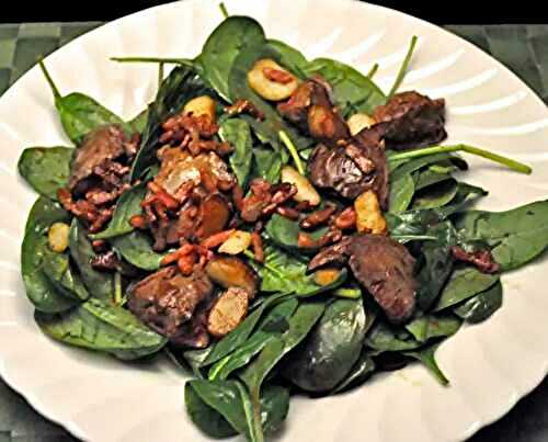 Rumaki Spinach Salad, with fried chicken livers, bacon and water chestnuts.