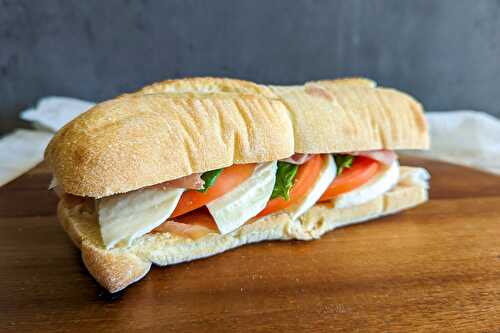 An easy prosciutto and mozzarella sandwich with fresh tomato and basil on a baguette makes the perfect picnic lunch! All you need is 6 ingredients and less than 10 minutes for the most delicious Italian sandwich.